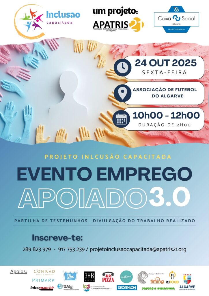 A sede da Associação de Futebol do Algarve, em Faro, vai receber um seminário sobre Emprego Apoiado, organizado pela APATRIS21 – Associação de Portadores de Trissomia 21 do Algarve, que tem como objetivo promover a inclusão profissional de pessoas com deficiência e/ou outras dificuldades de inserção no mercado de trabalho.