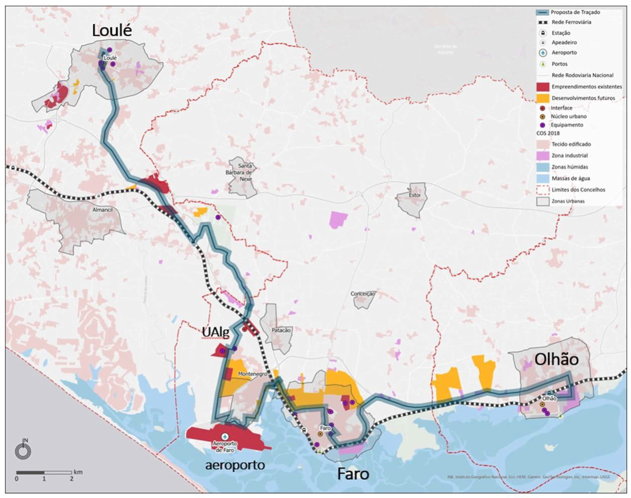 O traçado proposto foi desenvolvido tendo em consideração as necessidades de mobilidade das populações de Faro, Olhão e Loulé, ao mesmo tempo que serve locais-chave que constituem uma bacia de emprego com grande relevância regional, onde se localizam os quatro grandes polos geradores de empregos e atividades económicas diversas (Universidade do Algarve, Aeroporto Internacional Gago Coutinho, Parque das Cidades e Centro Comercial de Loulé), que provocam um grande número as deslocações pendulares nestes três concelhos.