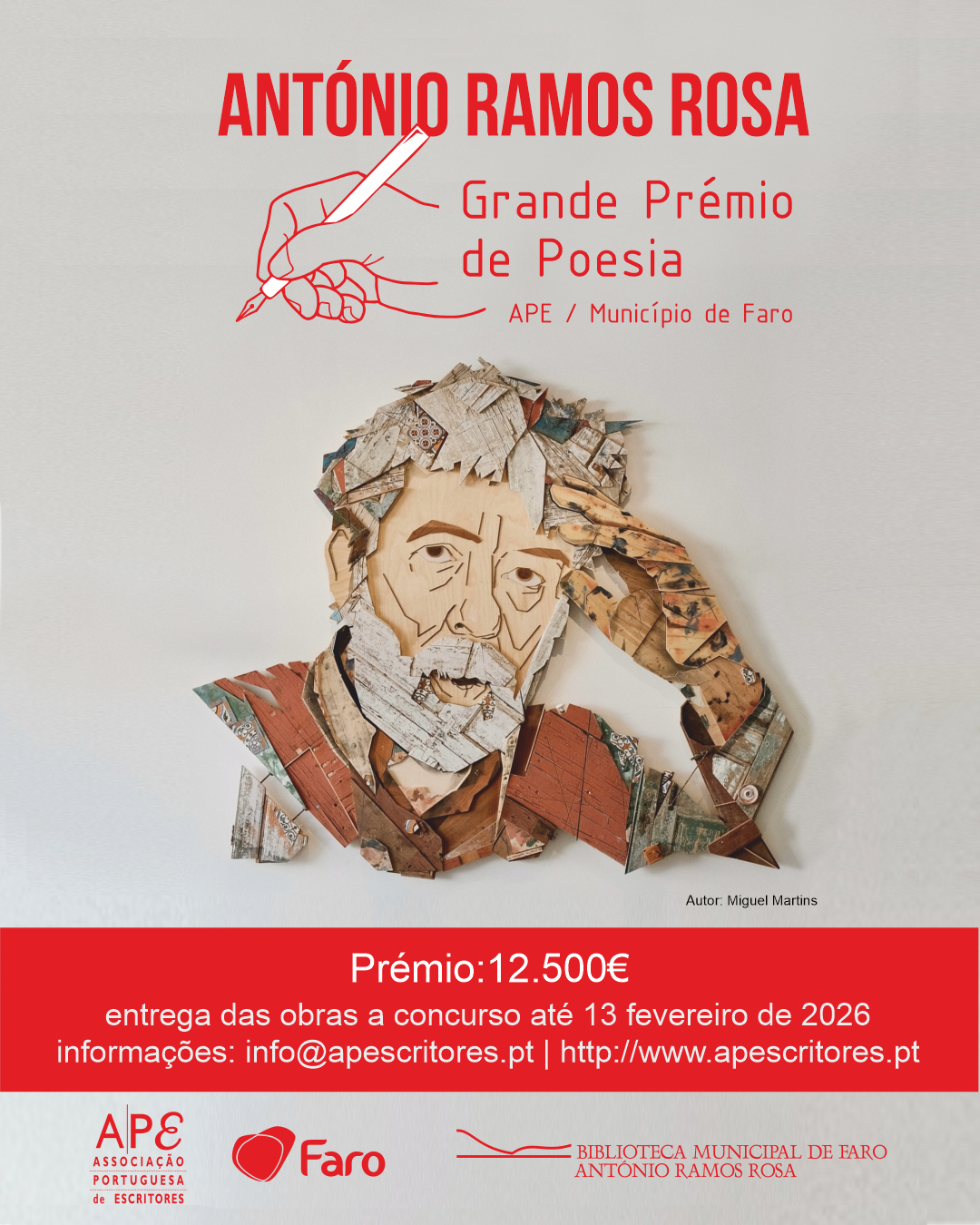 A Associação Portuguesa de Escritores (APE) anuncia a abertura da 3.ª edição do Grande Prémio de Poesia António Ramos Rosa APE | Câmara Municipal de Faro.