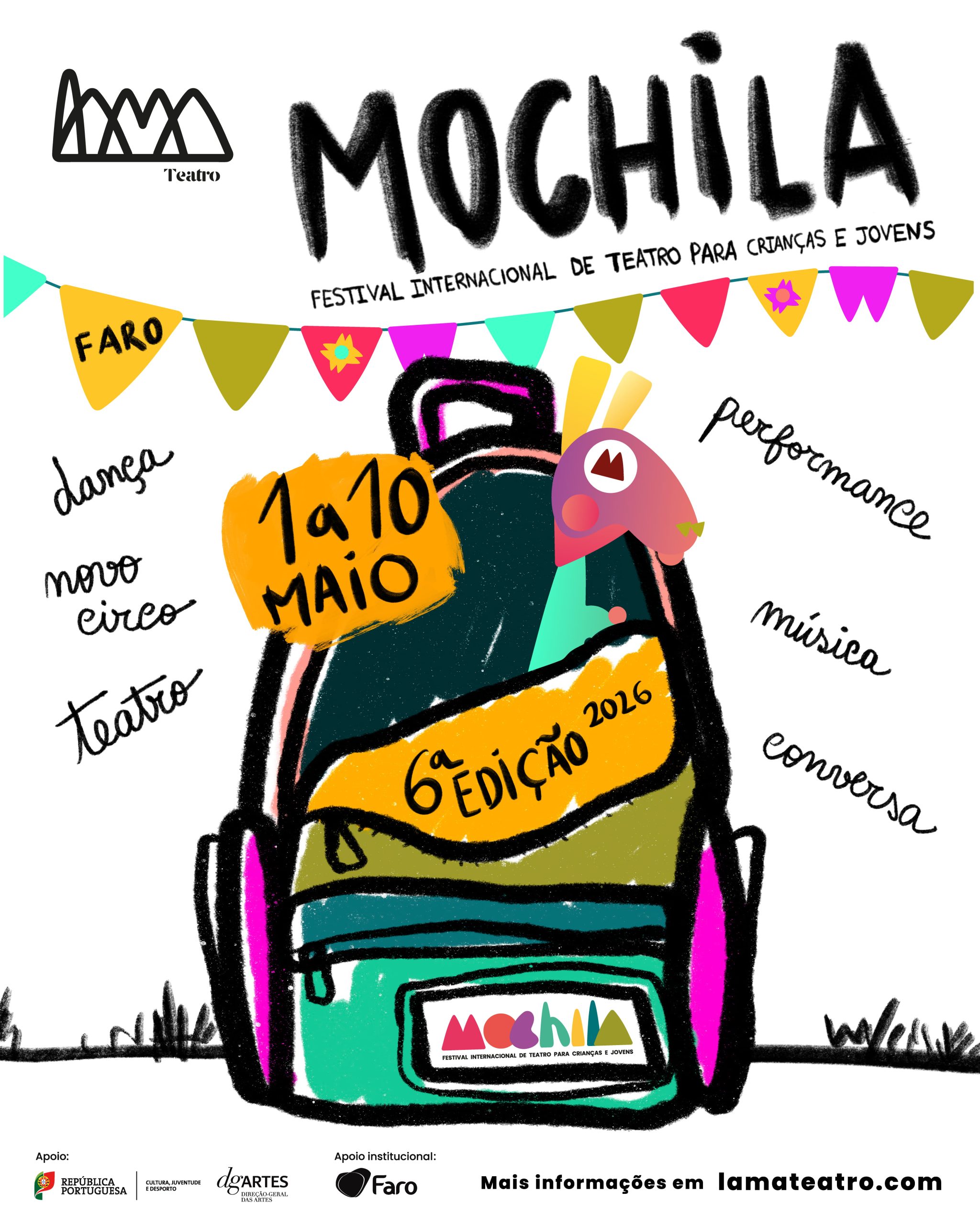 Com organização do LAMA Teatro e Direção Artística de João de Brito, o Festival MOCHILA realiza-se anualmente, desde 2021, com o objetivo de promover a descentralização da oferta cultural, a democratização do acesso a uma programação artística multidisciplinar de qualidade e a capacitação do público e das comunidades para o desenvolvimento de um pensamento crítico sobre o mundo contemporâneo.