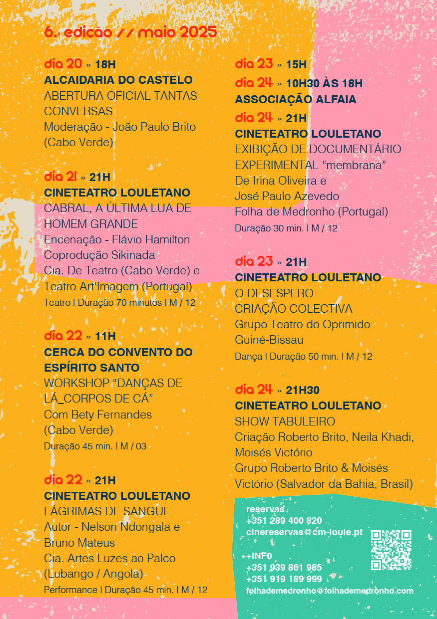 Pela sexta vez, entre 20 e 24 de maio, Loulé será o centro das artes performativas em Portugal, recebendo grupos e convidados vindos de Cabo-Verde, Guiné-Bissau, Angola, Brasil, Moçambique, São Tomé e Príncipe e Portugal, várias latitudes onde o português, com cambiantes que alargam e enriquecem léxico, semântica e sintaxe, permite a troca de conhecimentos, experiências, culturas e memórias.