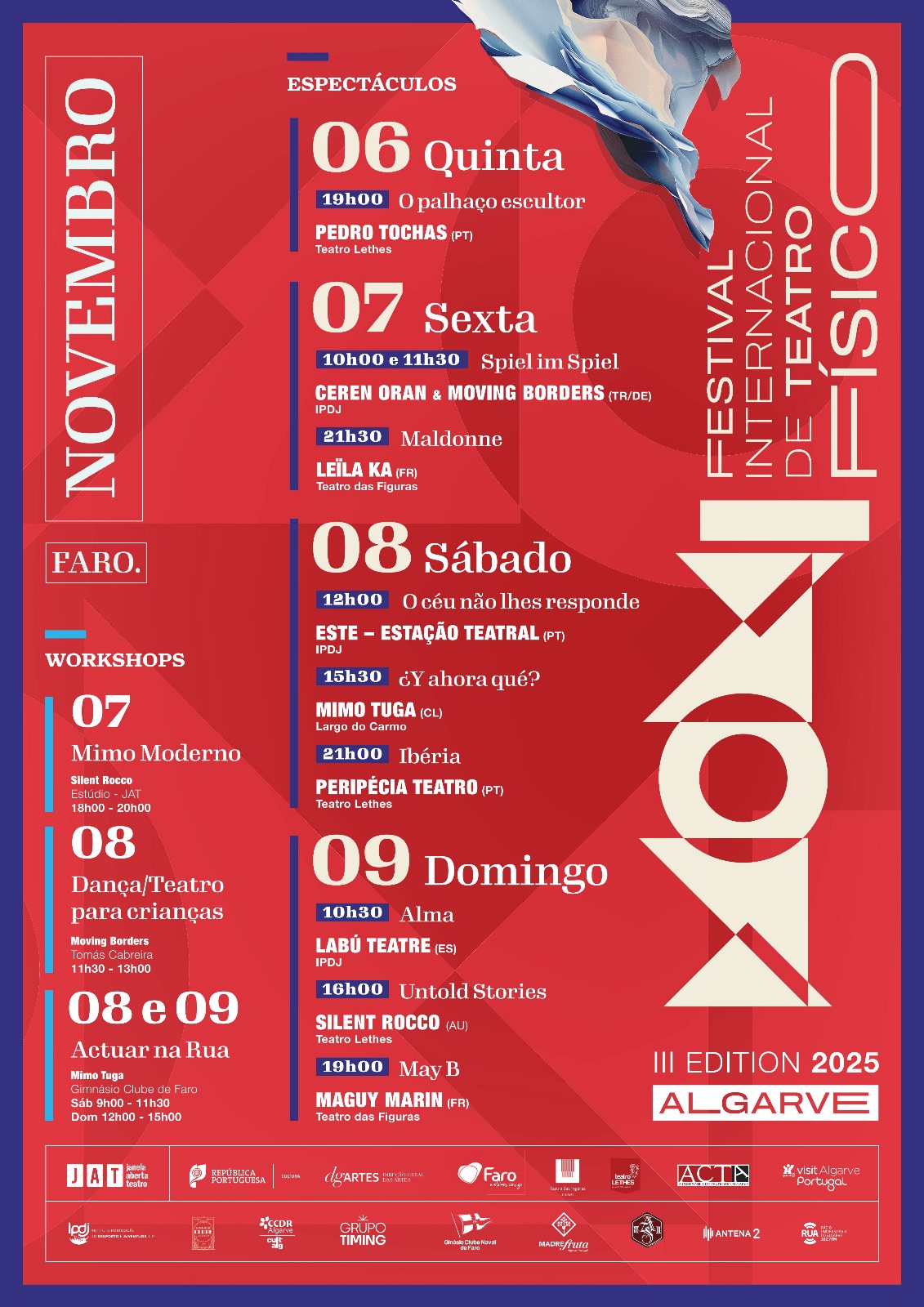 Faro volta a afirmar-se como um epicentro da criação artística contemporânea com a realização do MOMI – Festival Internacional de Teatro Físico, uma iniciativa pioneira do JAT – Janela Aberta Teatro, que traz à cidade uma oferta cultural inovadora e de vanguarda, onde o corpo é o protagonista e o movimento, a linguagem universal.